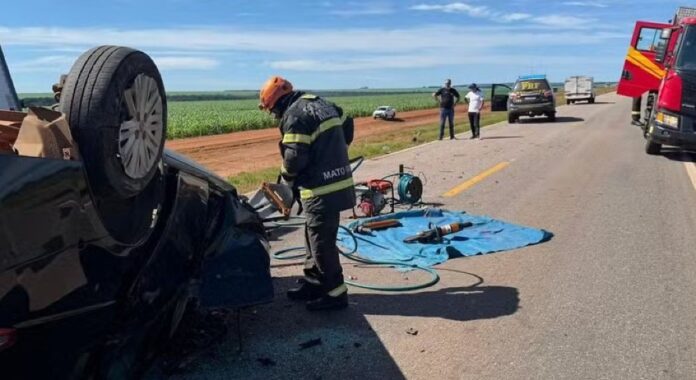 Um homem, ainda não identificado, morreu na manhã desta segunda-feira (06) em um grave acidente envolvendo um carro de passeio, uma carreta e um caminhão baú na BR-070, em Primavera do Leste (234 km de Cuiabá). A vítima ficou presa às ferragens e morreu no local antes de receber socorro.